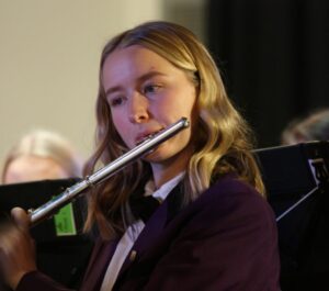 Meine Leidenschaft für Musik hat schon im Kindergarten begonnen, als ich meine ersten Töne auf der Blockflöte spielte. Mit 11 Jahren wechselte ich zur Querflöte, und seit 2018 bin ich mit viel Freude Musikerin im SJB.
